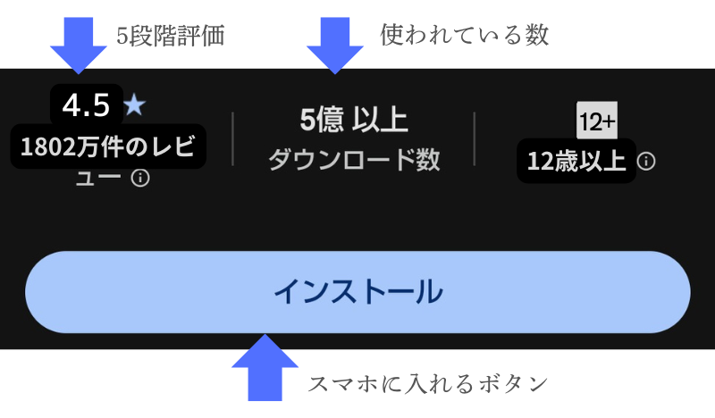 • ダウンロード数: “億”単位の大きな数字があるか確認