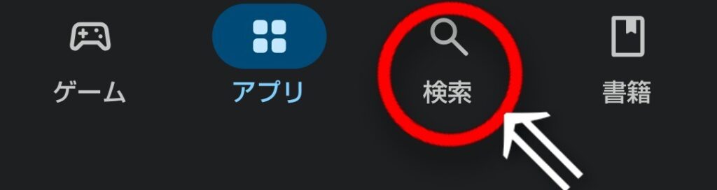 Play ストアを開くと、画面の下部に検索バー[🔍検索]虫眼鏡マーク)が表示されています。↓↓↓